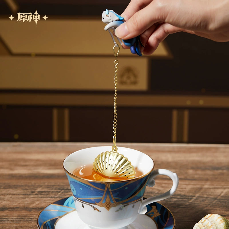Inspired by Genshin Impact, this elegant tea set celebrates Neuvillette’s refined aesthetic. The set includes a ceramic cup, saucer, and a titanium-plated stainless steel spoon, each with intricate details. Also included are a tea strainer and a tea buddy, enhancing the tea experience. The spoon features a decorative charm that adds a touch of character. Perfect for fans, this set blends functionality with the timeless elegance of Neuvillette’s design.