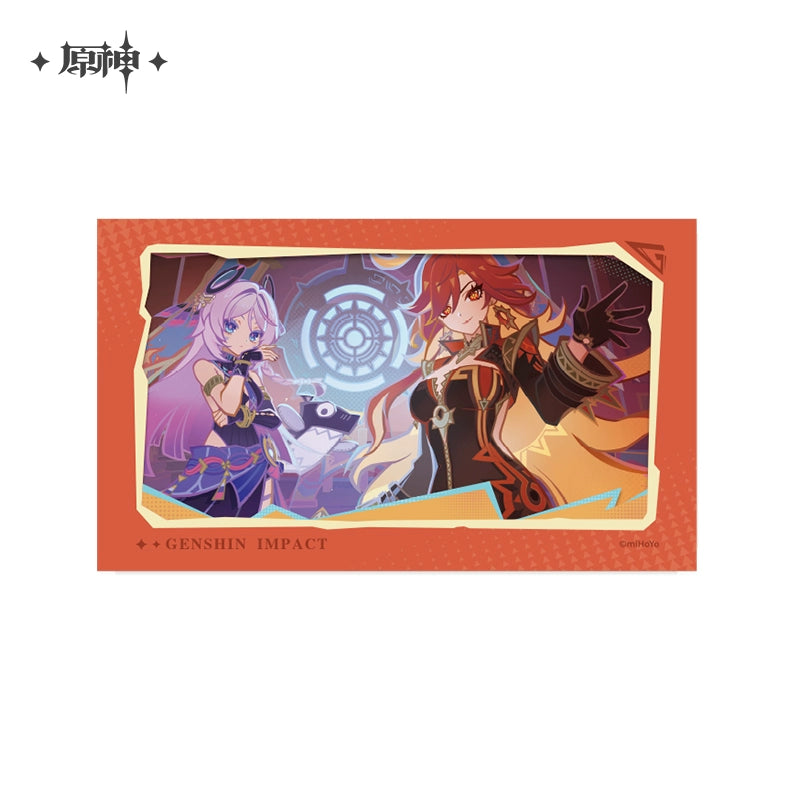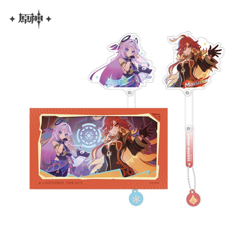 Celebrate Genshin Impact’s Special Program Illustration Series with this exclusive merchandise, featuring Acrylic Photo Sticks and Transparent Cards inspired by Citlali and Mavuika. The Acrylic Photo Sticks combine holographic silver and gold printing for a shimmering finish, with precise character dimensions of approximately 94x89mm for Citlali and 86x89mm for Mavuika, complemented by delicate charms. The Transparent Cards, sized at 178x105mm, are crafted from paper and PET using embossing and UV printing techniques, complete with a standable frame for display. These collectible items bring vivid character designs to life, making them perfect for fans seeking a unique way to showcase their favorite characters.