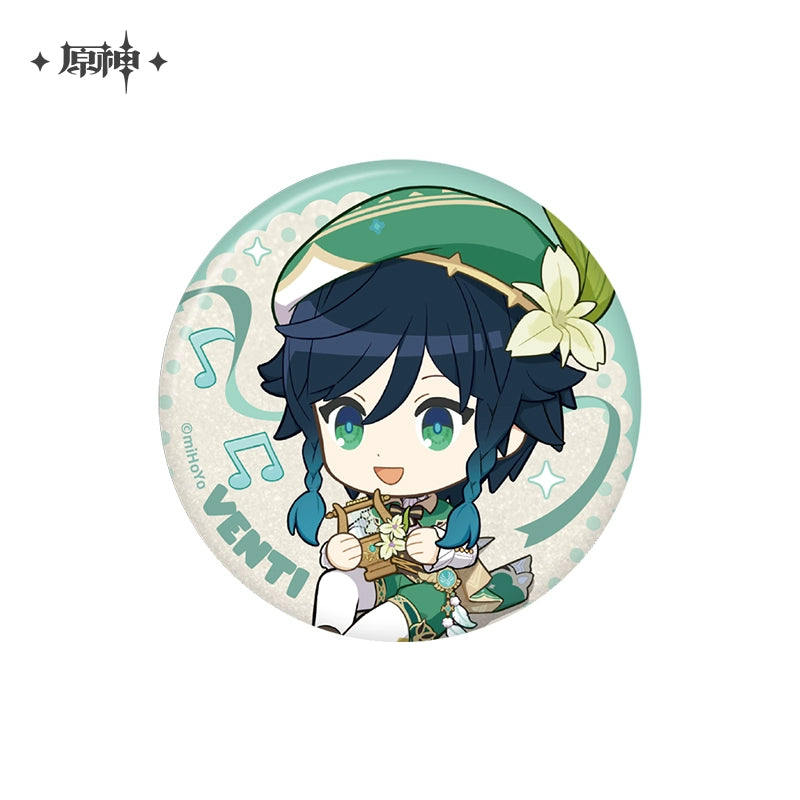 Starlight Reverie Series Character Badges feature chibi-style renditions of beloved Genshin Impact characters, including Venti, Klee, Zhongli, Ganyu, and Nahida. Each badge is crafted from tinplate with an iridescent white glitter, measuring approximately 58mm. These sparkling designs make for charming decorations, collectible items, or delightful accessories for fans of Teyvat’s adventures.