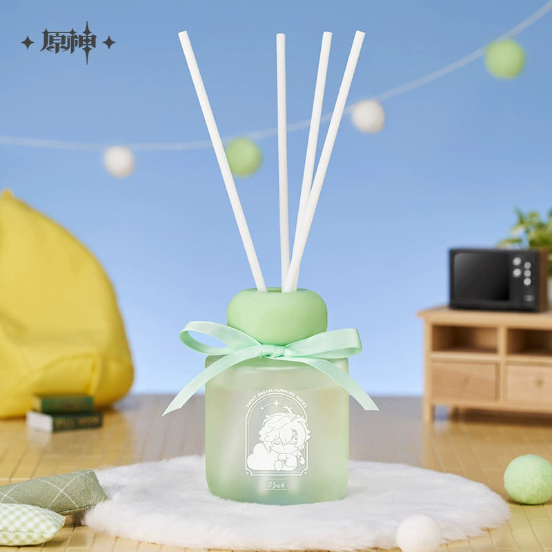 The Sweet Dream Whispers Series Reed Diffuser brings the gentle charm of Genshin Impact into daily life, with pastel bottles featuring adorable chibi designs of Xiao, Kamisato Ayato, Tighnari, Neuvillette, and Kinich. Each edition offers a unique fragrance blend—fresh eucalyptus and mint with warm amber for Xiao, refined bergamot and camellia for Ayato, bright citrus and herbs for Tighnari, a sea-kissed blend for Neuvillette, and soothing bamboo and lavender for Kinich. Complete with seven fiber reeds for even diffusion, each 100ml diffuser creates a calm, dreamlike atmosphere inspired by Teyvat’s tranquil nights.