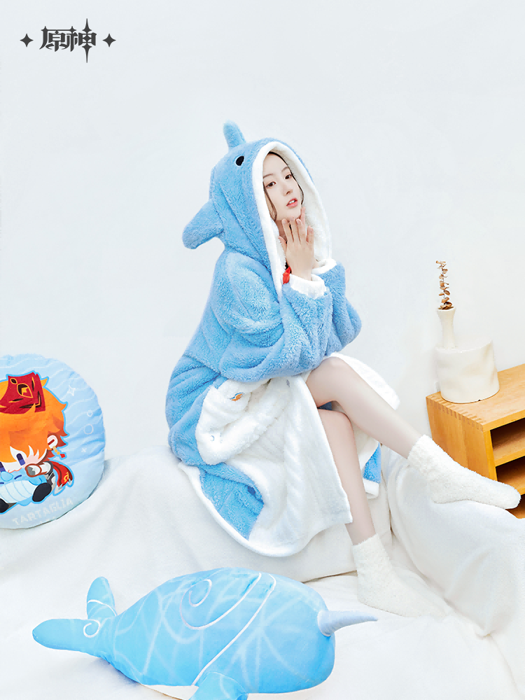 Introducing the Genshin Impact Monoceros Caeli Plush Home Series: Robe, a cozy and adorable addition to your collection. Made from high-quality coral fleece with 100% polyester fiber, this robe features a cute 3D plush whale-shaped hat that adds a touch of charm and comfort to your home.