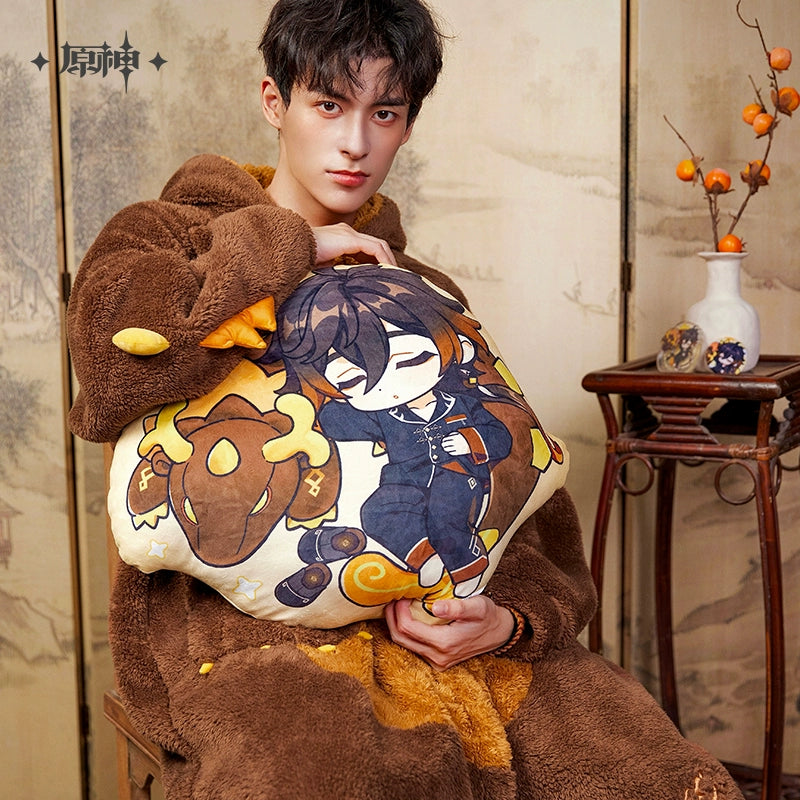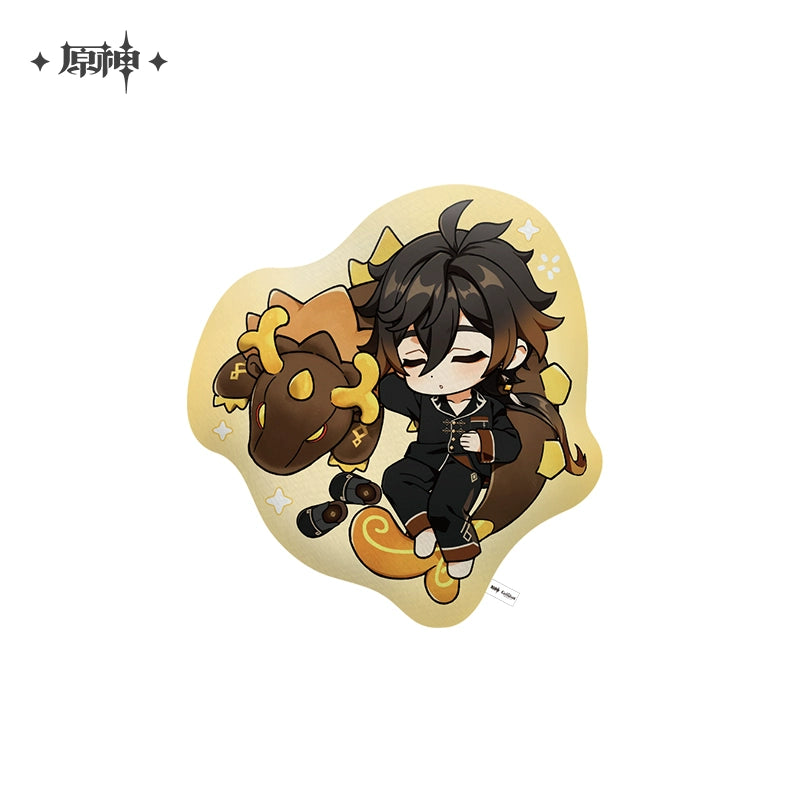 The Zhongli Theme Impression Series Chibi Shaped Cushion offers a soft and smooth surface, crafted from 95% polyester and 5% spandex, with a 100% polyester filling. Measuring approximately 54x51cm, this oversized pillow is perfect for hugging or leaning, providing both comfort and coziness. The clear and vibrant print showcases Zhongli in an adorable chibi form, making it an ideal collectible or gift for fans of Genshin Impact.