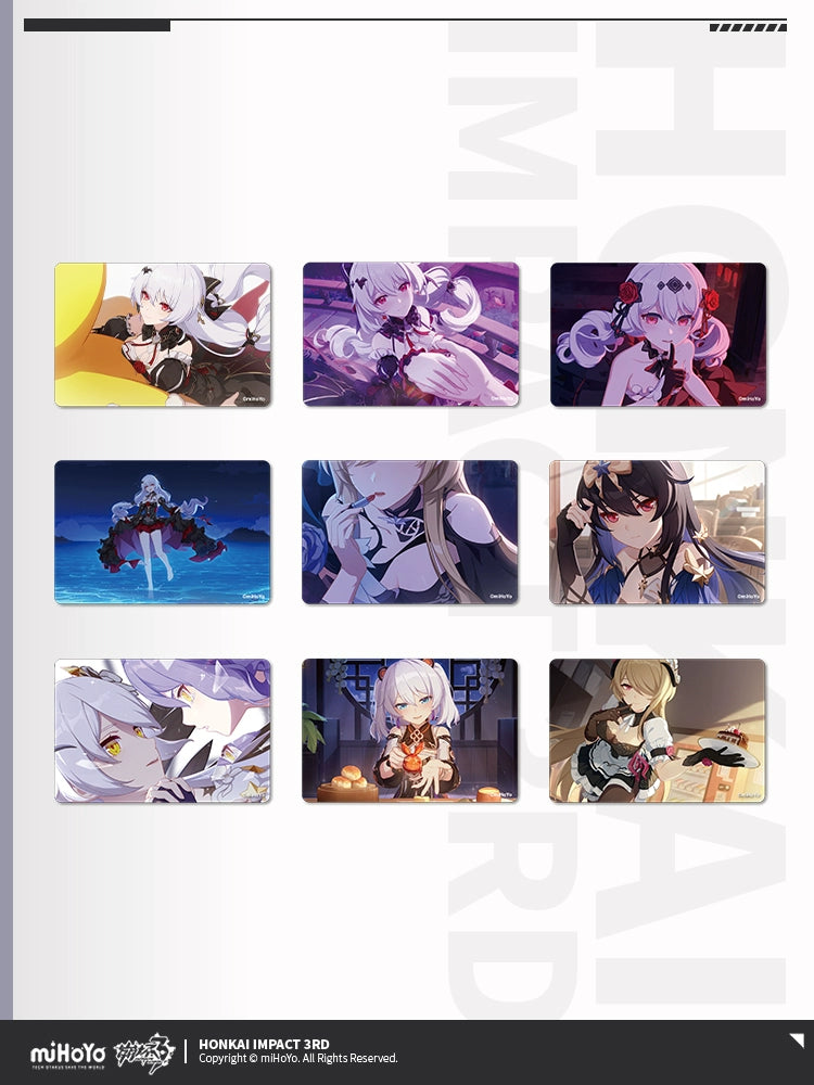 The Honkai Impact 3rd CG Series introduces a collection of Lenticular Cards, available in 9 distinct styles. Each card measures 110x190mm and is crafted from PP material, featuring a lenticular design that adds a dynamic visual effect. These cards are packaged in sulfite paper and an OPP bag, making them a unique and collectible item for fans of the game.