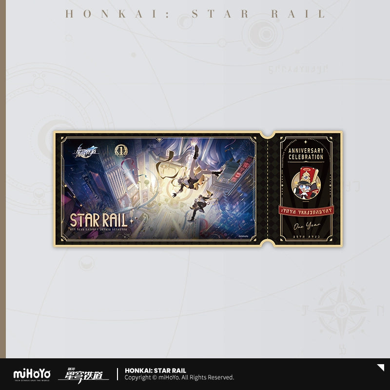 The 1st Anniversary Collectible Cards Set celebrates Honkai: Star Rail with exclusive memorabilia. It includes 29 collectible cards, a zinc alloy commemorative medal, and a holographic ticket stub. Each item features intricate designs, such as holographic paper and electroplating, enhancing their premium feel. The set comes packaged in a special box, making it a great collectible for fans.