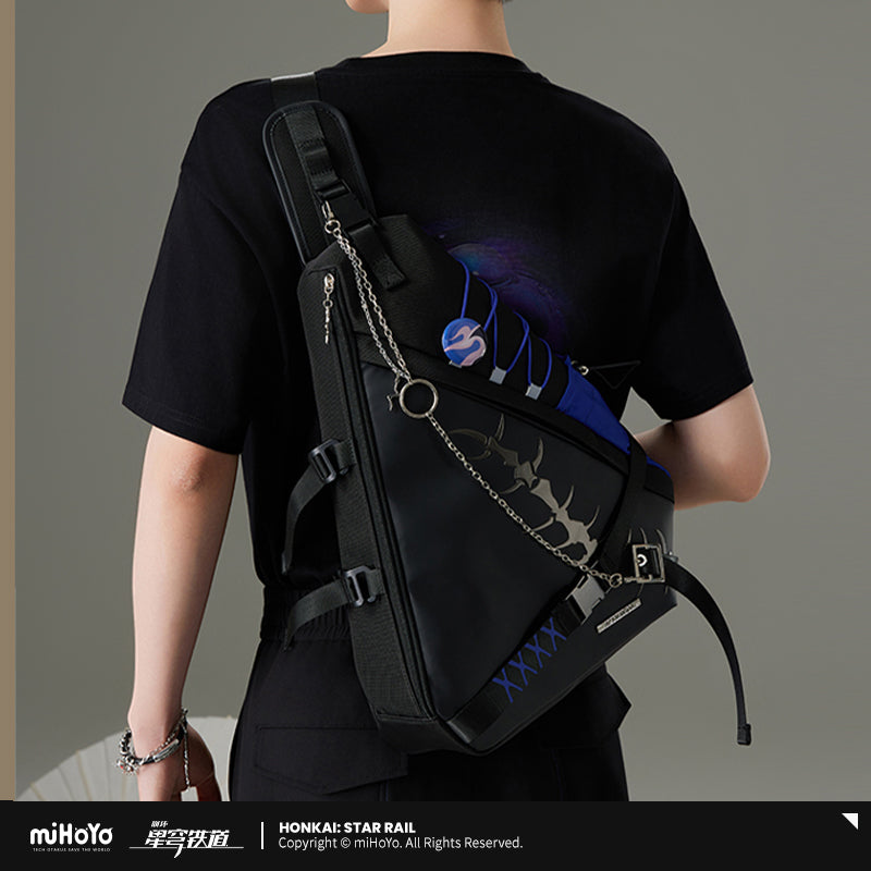 Acheron Theme Impression Series Crossbody Bag blends the enigmatic flair of Acheron from Honkai: Star Rail with sleek, functional design. The bag is crafted from polyester and polyurethane synthetic leather, offering durability with a sophisticated edge. A standout feature is the 3D TPU embossed skeletal motif with a metallic finish, reflecting Acheron’s signature style. A side strap accommodates a long umbrella, adding convenience for daily outings. Merging futuristic aesthetics with practicality, this crossbody bag is a must-have for those drawn to cosmic elegance.