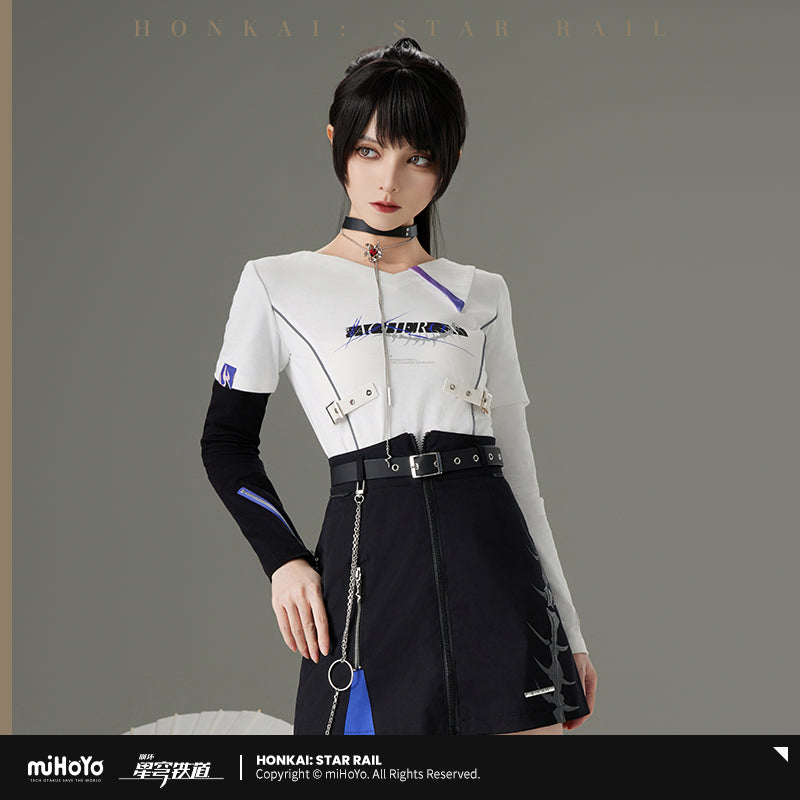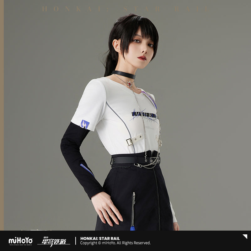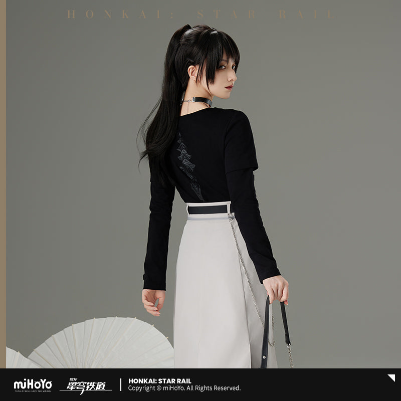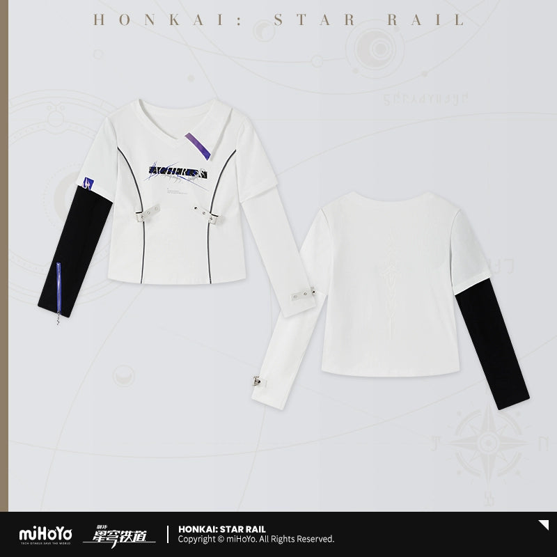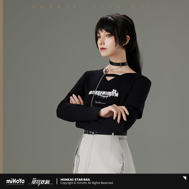 The Acheron Theme Impression Series Long-Sleeve T-Shirt offers a blend of style and comfort inspired by Honkai: Star Rail. Made with H plain weave 100% cotton fabric, both the main body and contrasting parts are crafted for durability and softness. This design reflects the Acheron theme with subtle details that capture the spirit of the game, making it ideal for fans seeking to integrate game-inspired elements into their daily wardrobe.