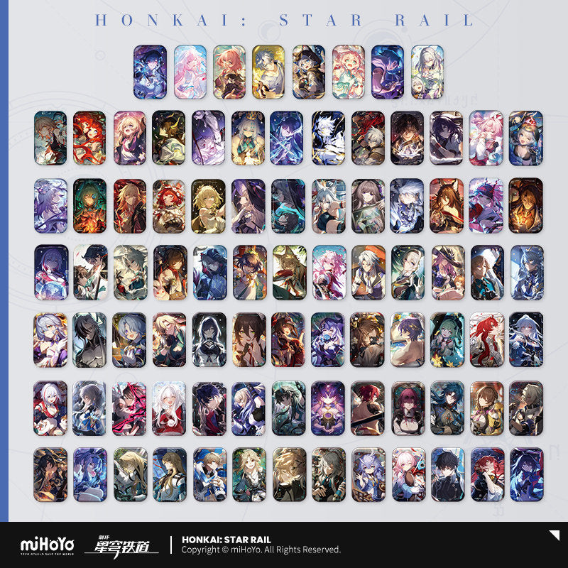 Honkai Star Rail Light Cone Series Long Badges are made from tinplate and feature PET Printing with Crushed Glass Cushion Paper. These badges measure 7x4cm and come in OPP Bags with Backing Cards. They showcase stunning Light Cone artwork of characters from Honkai: Star Rail.