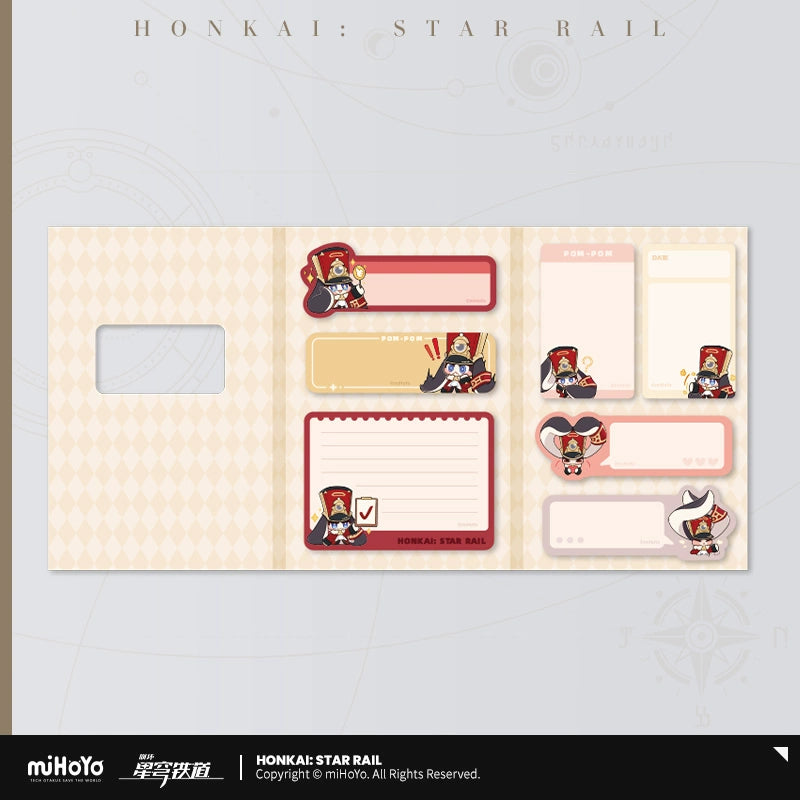 Discover the Honkai Star Rail Pom-Pom Exhibition Hall Series Chibi Sticky Note Set, available in two delightful styles: Pom-Pom Style and March 7th Style. These sticky notes are crafted from high-quality paper and feature vibrant four-color printing. Each set includes sticky notes measuring approximately 265x130mm (unfolded), and they come neatly packaged in a PP bag for your convenience.