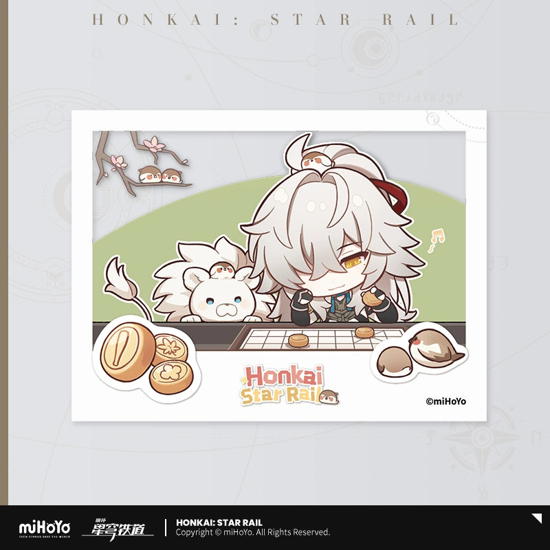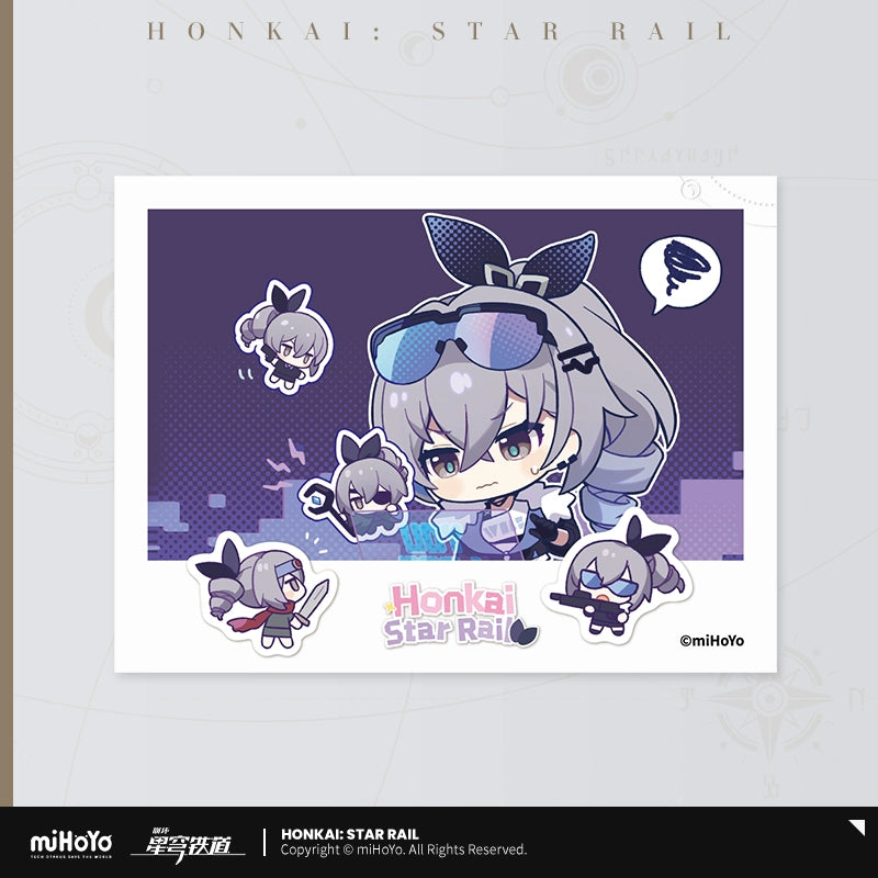 The Pom-Pom Photo Album Series Film-Style Cards feature ten characters from Honkai: Star Rail—such as Kafka, Blade, Silver Wolf, Jing Yuan, and more—captured in a cinematic design. Each card measures approximately 100×75mm and is crafted with partial embossing and UV details on durable paper and PVC. Packaged in random foil pouches or a complete set box, this collection blends charm with collectible elegance.