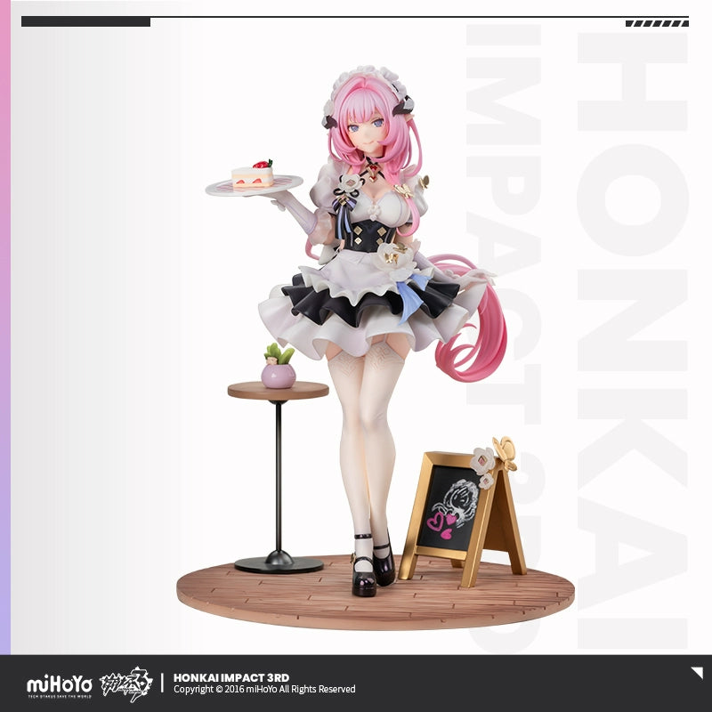 The Honkai Impact 3rd Elysia 1/7 Scale Figure Miss Pink ver. is a finely detailed PVC & ABS painted figure. This non-standard scale figure stands at approximately 24.5cm tall, with the widest point reaching about 16.5cm from apron to hair. It comes with an exclusive 0.5cm high base with a diameter of 19cm, making the total product height 25cm. This figure perfectly captures Elysia's essence, making it an exquisite addition for collectors and fans of the game.