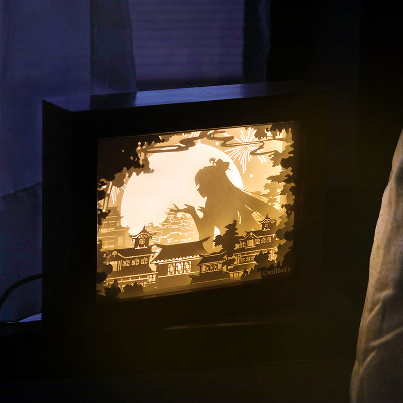 Experience the enchantment of Genshin Impact with our official merchandise, proudly brought to you by miHoYo. Delight in our intricately designed paper-cut lightbox, capturing a mesmerizing story cutscene featuring Tianquan of the Liyue Qixing and Jade Chamber's esteemed owner, Ningguang. Elevate your living room or bedroom ambiance with this exquisite piece that doubles as a captivating night lamp.[Product Information]