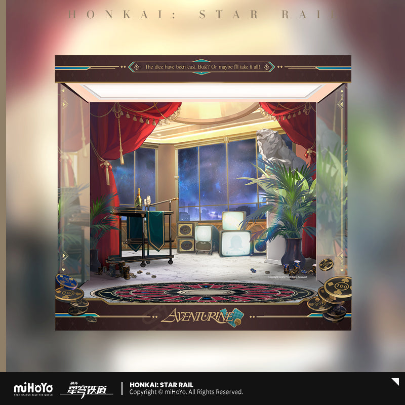 Inspired by the casino-themed flair of Honkai: Star Rail’s Aventurine, this 1/7 scale figure display case sets the perfect stage for showcasing the character’s commanding presence. Available in Standard and Deluxe editions, both versions feature a backdrop that mirrors Aventurine’s luxurious office scene. The Deluxe edition includes built-in LED lighting on all sides and a special roulette light effect at the base, adding dynamic ambiance to the setup. Each case is made from durable acrylic and includes gloves, adhesive strips, and tools for assembly. Designed to complement the 1/7 Aventurine figure (sold separately), it captures the character’s high-stakes aura in a display-worthy setting.