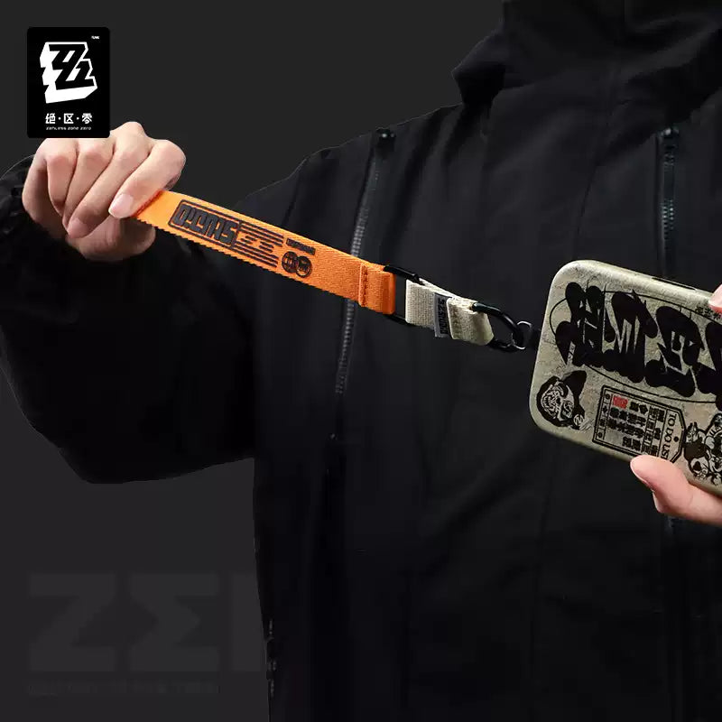 Urban Kit Series Multifunctional Phone Lanyard inspired by Zenless Zone Zero, featuring New Eridu street-style graphics and durable polyester webbing with metal hardware. Includes adjustable long shoulder strap and short wrist strap for flexible everyday use with phones, keys, or accessories. Comes with a universal phone tab and hanging ring, compatible with most cases. A practical and stylish carry accessory for agents moving through the city.